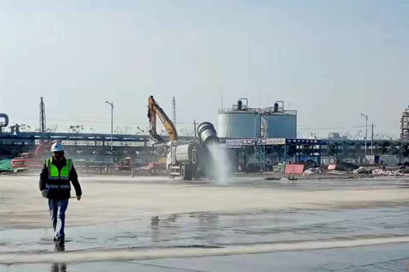 揚(yáng)塵措施治理到位。項(xiàng)目出入口設(shè)置車輛自動沖洗設(shè)備及PM2.5揚(yáng)塵監(jiān)測儀,主干道,循環(huán)路全部硬化,其余部位種植綠化填充,在作業(yè)過程中定時進(jìn)行噴灑,現(xiàn)場設(shè)置霧炮機(jī),力求無土化施工,為現(xiàn)場作業(yè)工人營造了舒心、清潔的工作環(huán)境。