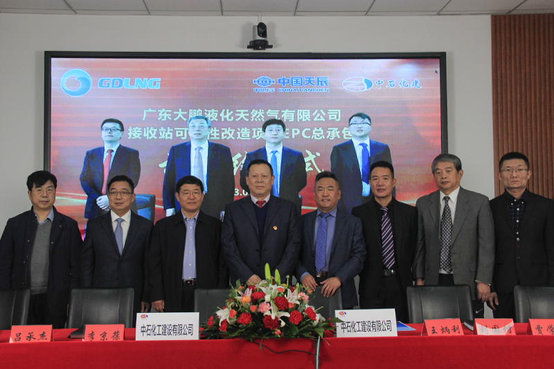 廣東大鵬液化天然氣有限公司總裁郝云峰、中國(guó)天辰工程有限公司總經(jīng)理焦在月、中石化工建設(shè)有限公司總經(jīng)理李京葆出席簽約儀式并講話。