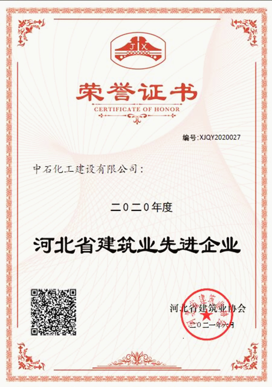 在河北省建筑業(yè)先進(jìn)企業(yè)認(rèn)定中,公司再獲2020年度河北省建筑業(yè)先進(jìn)企業(yè)。李京葆同志獲“河北省建筑業(yè)優(yōu)秀企業(yè)管理者”稱號,周勝平同志獲“河北省建筑業(yè)優(yōu)秀總工程師”稱號,謝本奇、郭建哲、張?zhí)鞁扇煌精@“河北省建筑業(yè)優(yōu)秀項目經(jīng)理”稱號。