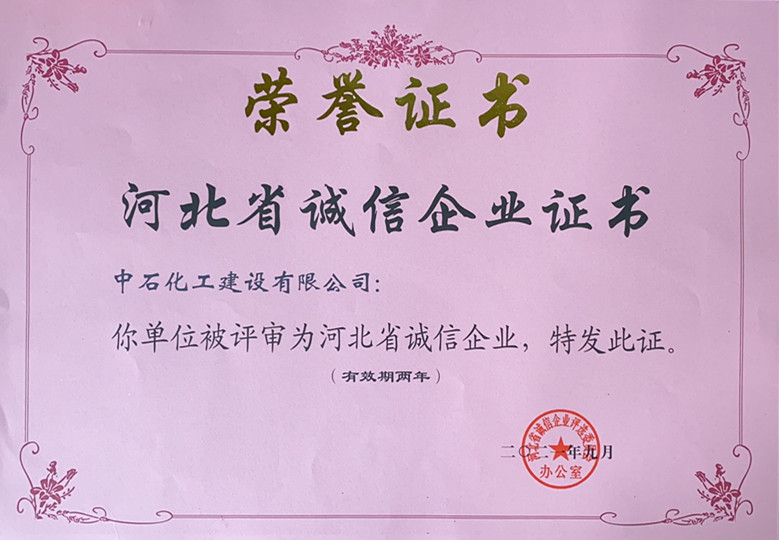 在河北省誠(chéng)信企業(yè)評(píng)選委員會(huì)辦公室聯(lián)合河北省企業(yè)家協(xié)會(huì)組織的2021年“河北省誠(chéng)信企業(yè)”評(píng)價(jià)選樹(shù)工作中,公司堅(jiān)持誠(chéng)信經(jīng)營(yíng),努力提高企業(yè)的誠(chéng)信建設(shè)水平,積極履行好社會(huì)責(zé)任,再次榮獲河北省誠(chéng)信企業(yè)。
