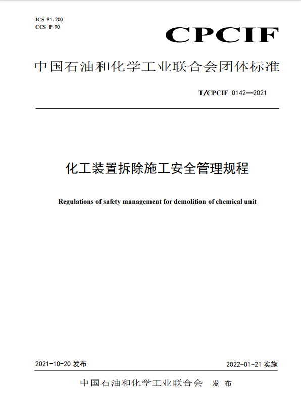 由中國(guó)化工施工企業(yè)協(xié)會(huì)主編、中石化工建設(shè)有限公司參與編制的《化工裝置拆除施工安全管理規(guī)程》(以下簡(jiǎn)稱“規(guī)程”),于2021年10月20日正式發(fā)布,并于2022年1月21日實(shí)施。